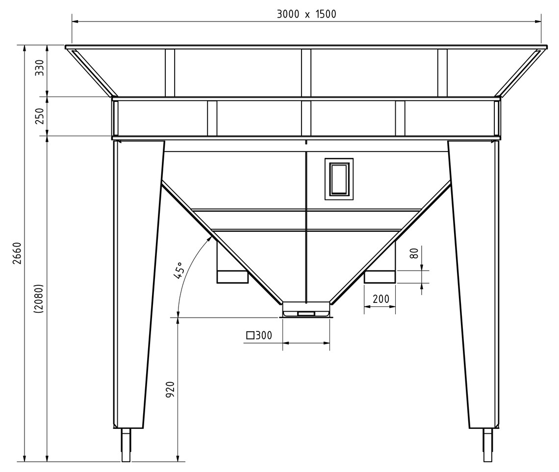 Der mobile Annahmetrichter mit einem Volumen von 3,7 m³ dient der Annahme von Getreide und anderen Schüttgütern. Dank der integrierten Stapleraufnahme lässt sich der Trichter beliebig versetzen. Die großen Lenkrollen ermöglichen leichtes Rangieren, sodass er jederzeit flexibel einsetzbar ist.